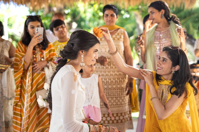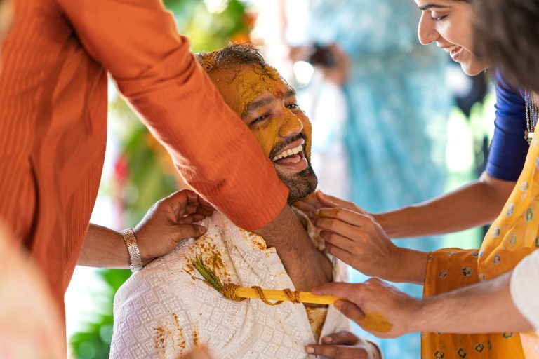 The celebrations began with the Mehendi, where delicate henna patterns were drawn while laughter and conversations filled the air. Then came the Sangeet, a night of music and dancing where family and friends truly let their energy shine. The Haldi ceremony was one of my favorite moments to capture, with bright yellow turmeric covering smiling faces and turning the afternoon into a living painting.